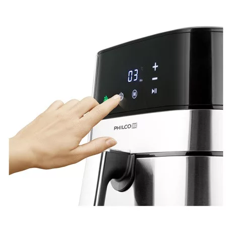 A Philco PHAF 5000 multifunkciós forrólevegős fritőz a hagyományos olajban sütés egészséges alternatívája. A ciklonfűtéses rendszer nagyobb hatékonyságának köszönhetően, gazdaságosabb és ropogósabb is az elkészített étel. A készülék 1700 W teljesítménnyel 5,0 literes kapacitású kosárral és állítható hőmérséklet szabályzóval lett felszerelve. Mindössze 3 perc szükséges a felfűtéshez és már készítheti is kedvenc fogásait zsiradék hozzáadása nélkül, legyen az hasábburgonya, hal vagy zöldség. A gyárilag beállított 9 program is az Ön kényelmét hivatott szolgálni.