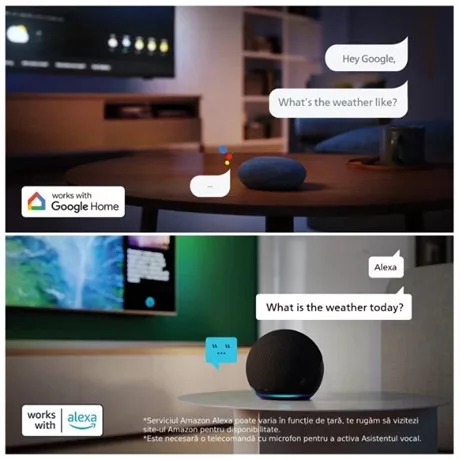 A Matter Smart Home kompatibilitás zökkenőmentes integrációt biztosít meglévő intelligens otthoni hálózatával. Ha a TV-t a Matter Smart Home alkalmazásból vagy hangvezérlési szolgáltatásokkal szeretné vezérelni, egyszerűen nyomja meg a távvezérlő gombját, és beszéljen. Csökkentheti a fényerőt. Beállíthatja a termosztátot. Még a Philips Ambilight TV-t is bekapcsolhatja. Elég csupán egy parancs.