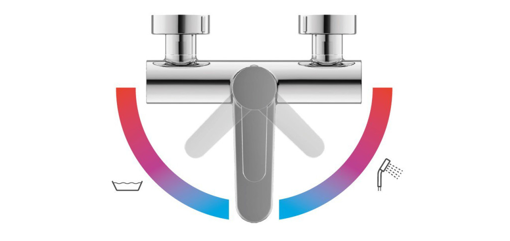 A Puri fürdőkád csaptelepnek speciális forgó kazettája van, amely a fürdőkád / zuhany között vált. A kar mozgatásával jobbra (zuhany) vagy balra (fürdőkád) csak a víz hőmérsékletét szabályozza, nem a vízáramlást, amely stabil.