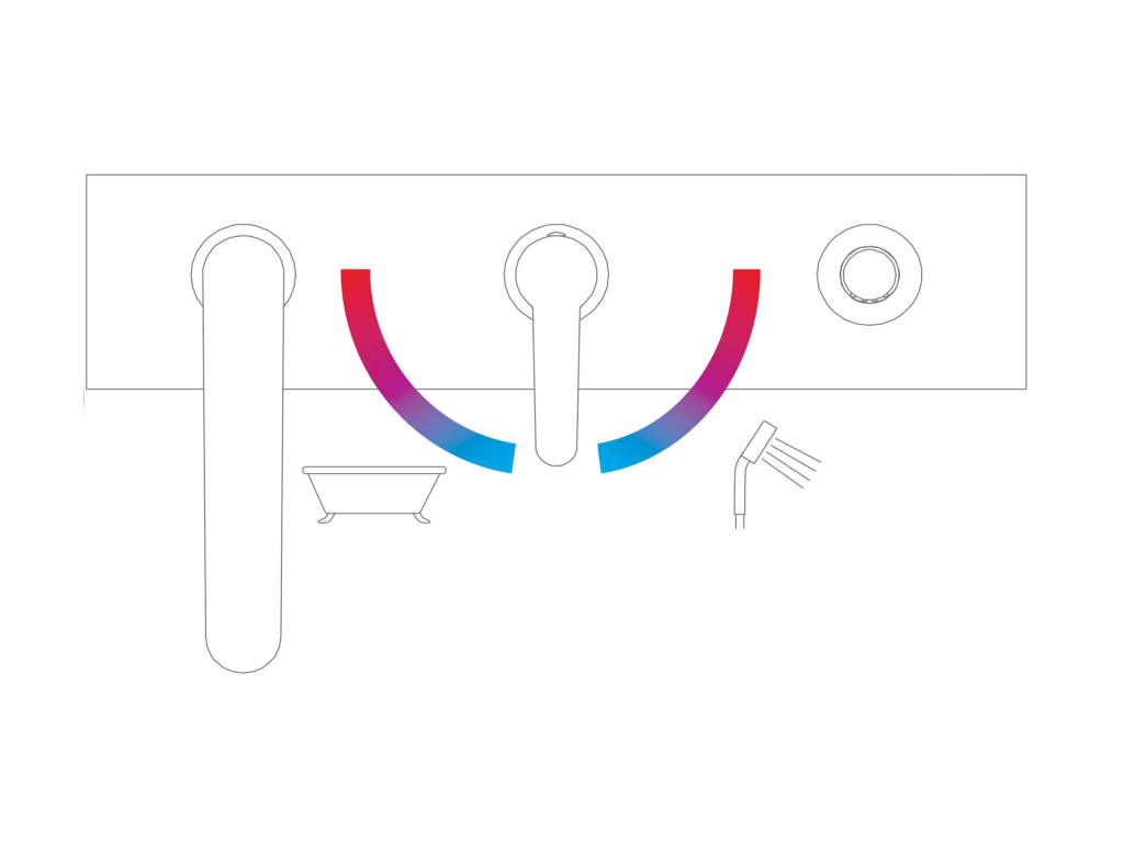 A Puri háromlyukú csaptelep speciális forgó kazettával rendelkezik, amely vált a kád és a zuhany között. A kar jobbra (zuhany) vagy balra (kád) mozgatásával csak a víz hőmérséklete szabályozható, nem a vízáramlás, amely stabil. A csaptelephez tartozik egy kihúzható zuhanyfej, amelynek hossza 175 cm, és rozsdamentes acélból készült egyszoros záró csővel rendelkezik.
