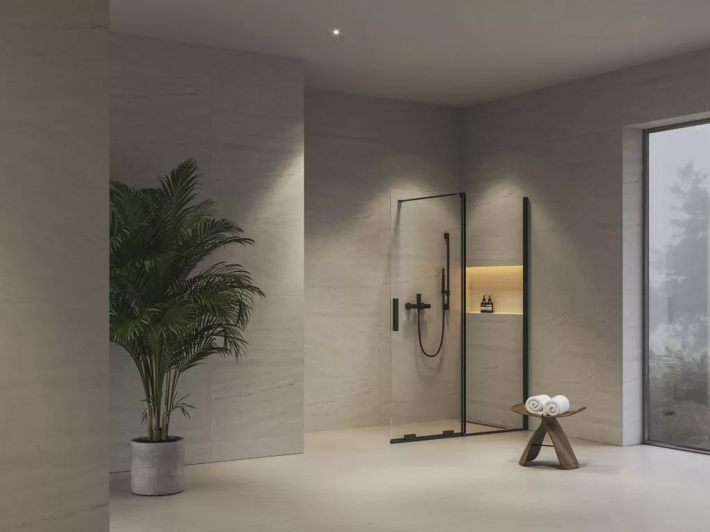 Javasoljuk a fürdőszoba burkolt sarkába történő telepítést, közvetlenül a padlóra, beépített zuhanyfolyókával vagy padlóösszefolyóval. A 1200 mm-es maximális szélesség elegendő helyet biztosít a kényelmes zuhanyzáshoz. A toló elem betolásával a zuhanyparaván teljes szélessége közel a felére csökkenthető.