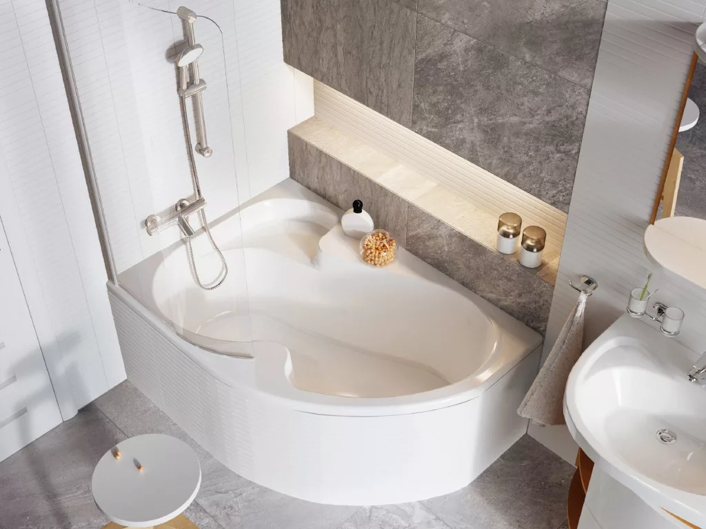 A Rosa I fürdőkád kiegészíthető VSK2 vagy CVSK1 kádparaván akkal. Kiegészítőként javasoljuk az elülső panelt, a fürdőkád túlfolyó készletet. Az elülső panel kompatibilis a fürdőkád bal és jobb kivitelével. A fürdőkádhoz a teljes fürdőszoba termékeinek koncepciója kapcsolódik.