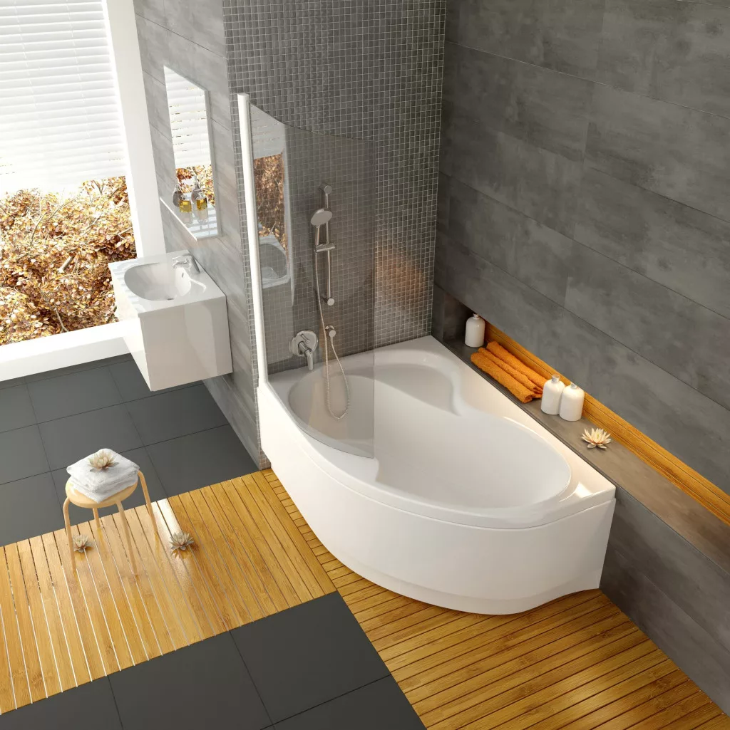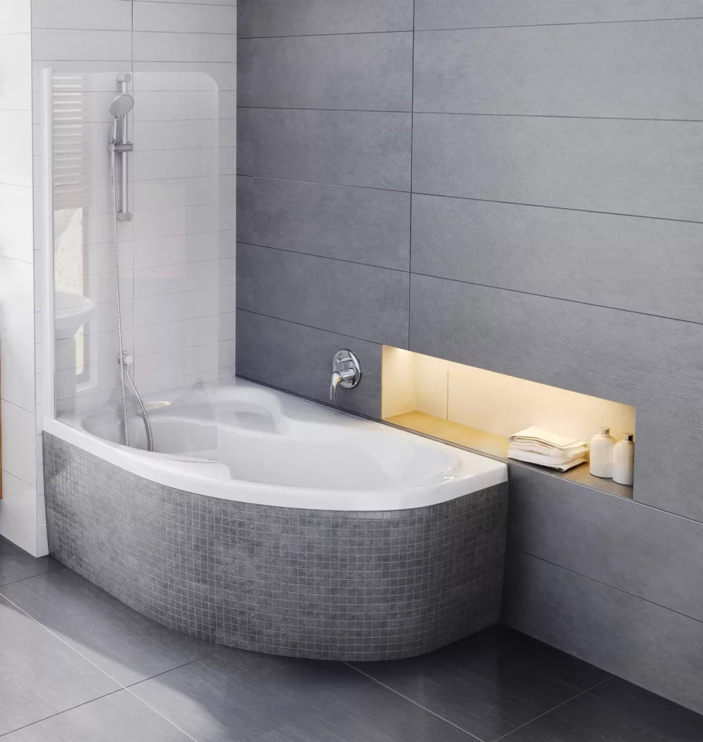 Fürdőkád vagy zuhanyzó? A dilemma véget ér. A Rosa II kényelmes fürdőkádként és tágas zuhanyzóként működik egyben. Bal oldali változat.