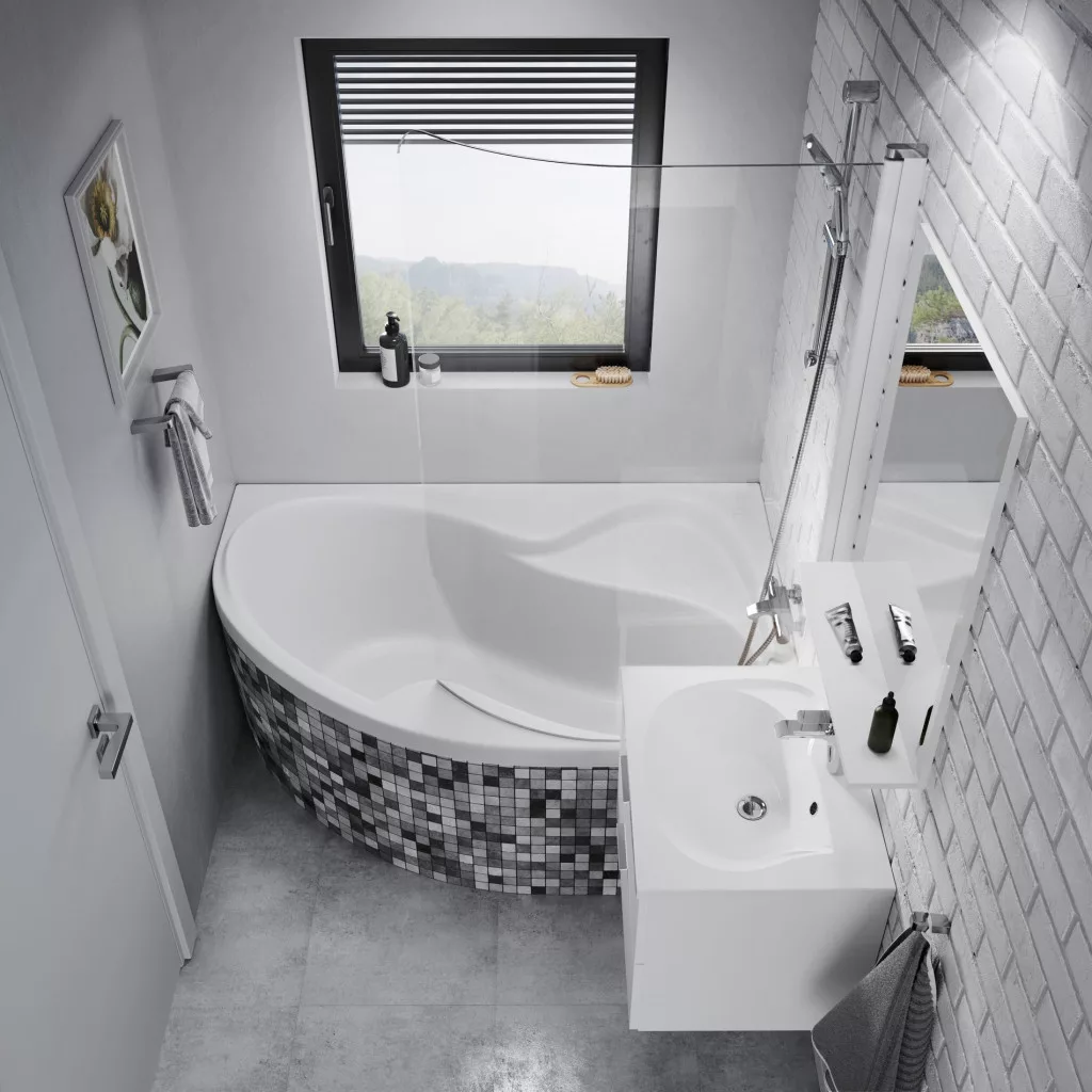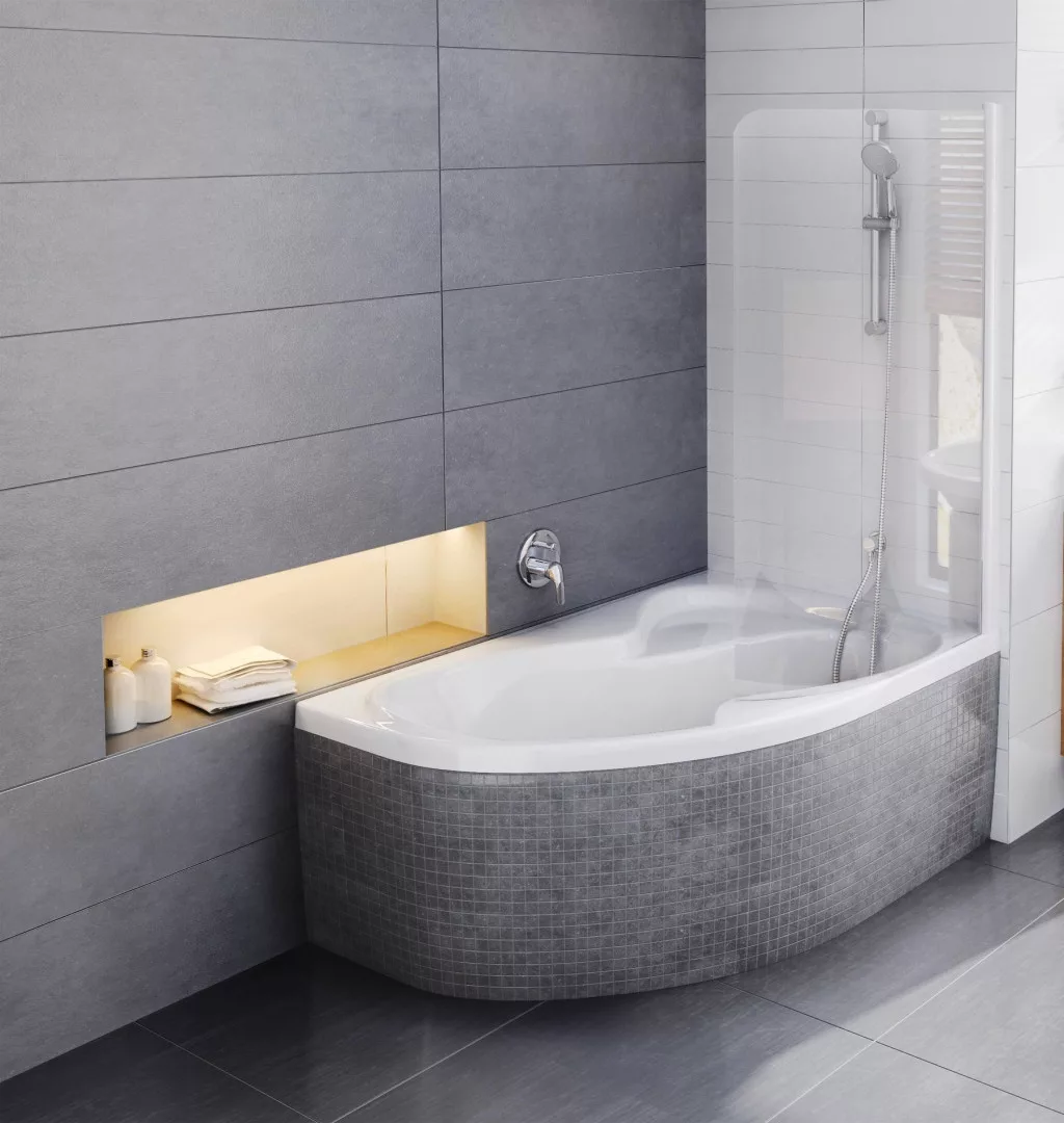 Fürdőkád vagy zuhanyzó? A dilemma véget ér. A Rosa II kényelmes fürdőkádként és tágas zuhanyzóként működik egyben. Jobb oldali változat.
