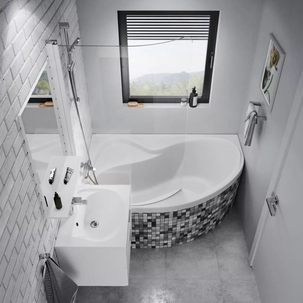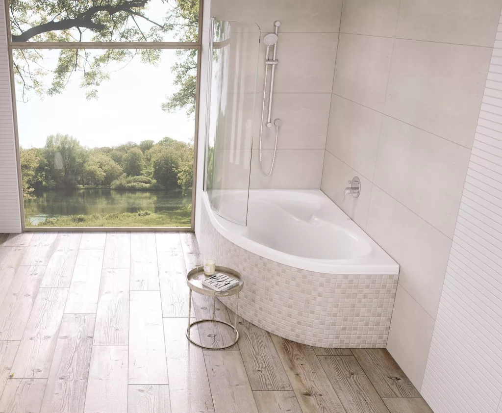 Fürdőkád vagy zuhanyzó? A dilemma véget ér. A Rosa II kényelmes fürdőkádként és tágas zuhanyzóként működik egyben. Bal oldali változat.