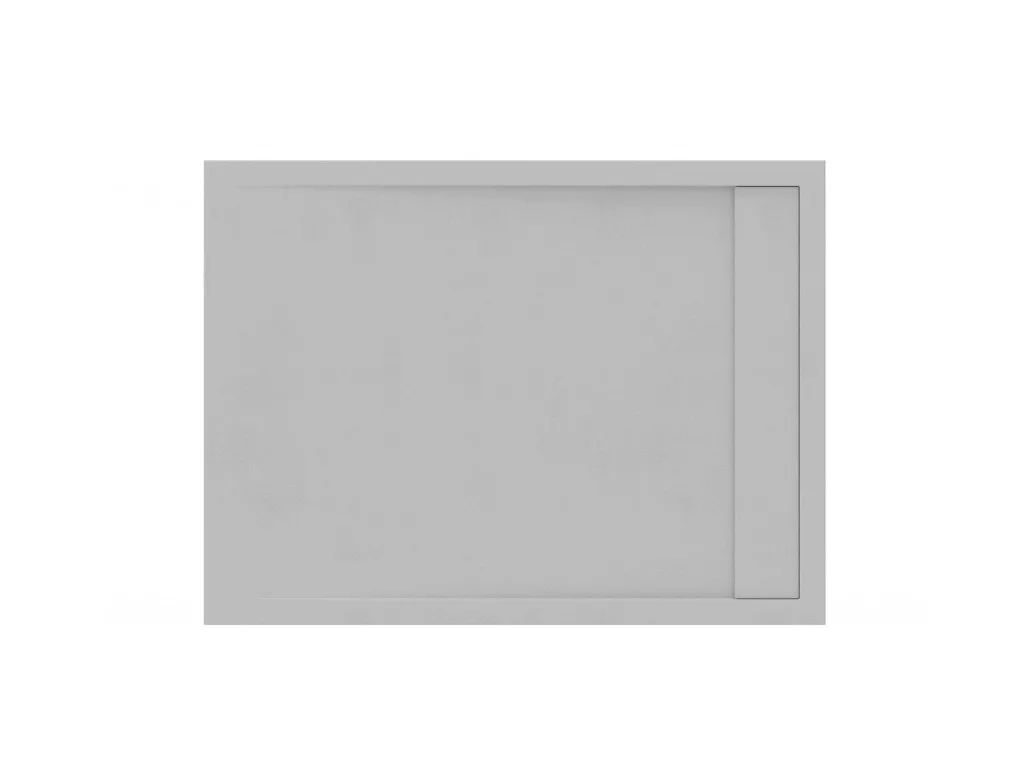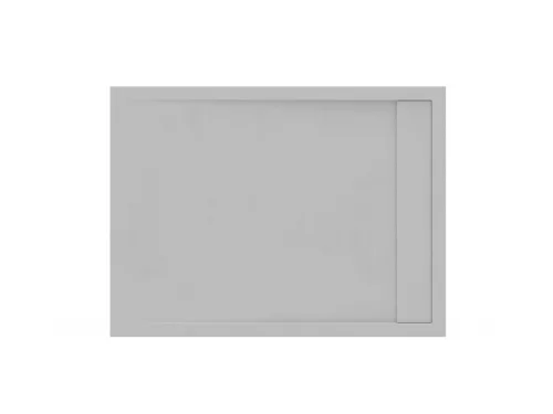 Aszimmetrikus Sandstone Pro zuhanytálca könnyített öntött márványból, akril-poliuretán permetezett bevonattal. Finoman érdesített felület, amely stukkóhatású textúrát idéz. Smoke Grey színben.