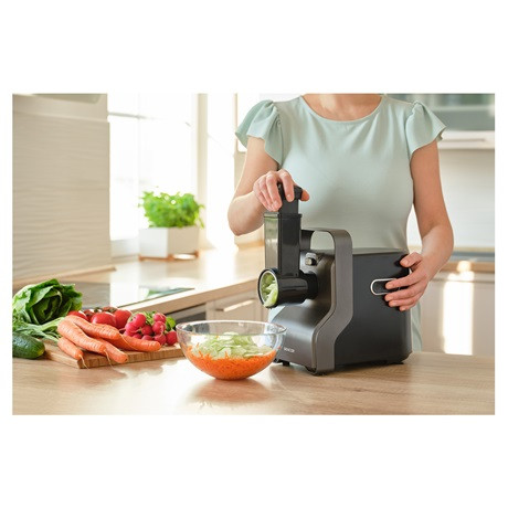 A rozsdamentes reszelővel gyümölcsöket, zöldségeket, sajtokat reszelhetsz.  Lehetőséged van kombinálni a finom vagy durva reszelőfejekkel. Felejtsd el az időigényes krumpli vagy sajt reszelést és a velejáró sérülésekkel. Ennyi funkció és tartozék után kijelenthető, hogy valóban igazi társad lesz a konyhában.