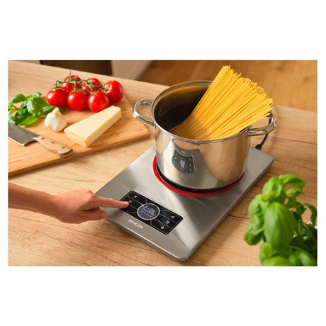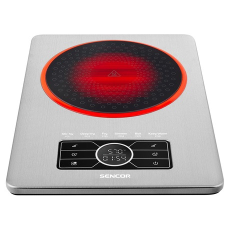 A csúcstechnológia egy ideális kialakítással lett kombinálva, így szinte bármilyen stílusú konyhában egyszerűen beilleszthető. Minden részlete átgondolt. Például a forró felületre figyelmeztető jelzés színes gyűrűt jelenít meg a főzőlap körül – amint a felület 65 °C fölé melegszik, és figyelmeztet a lehetséges égési sérülés veszélyére. A rozsdamentes acél főzőlap felülete rendkívül könnyen tisztítható. Még az indukciós főzőlapok egy másik gyakori hátránya – a zaj –. Szerencsére a Sencor SCP 5010SS főzőlap esetén ettől sem kell tartani.