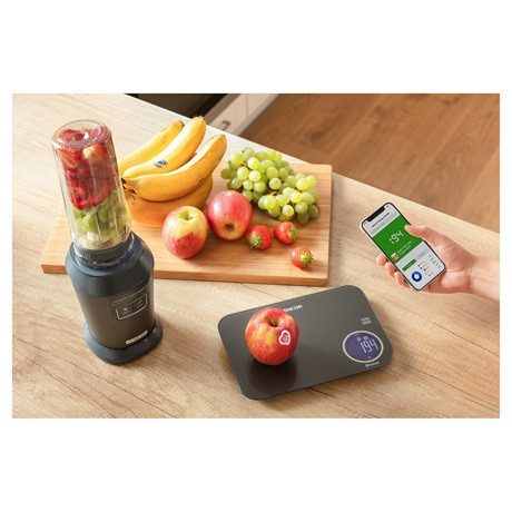 Intuitív, gyors és egyszerű. A mérleg is pontosan így csatlakozik az okostelefonhoz Bluetooth vezeték nélküli technológián keresztül, legyen az Android vagy iOS operációs rendszerű. Az alkalmazáshoz való csatlakozás után a kijelzőn és a mérlegen láthatja a súlyt, a kimért élelmiszer kiválasztása után pedig a tápanyag-összetételről is láthat részleteket - a szénhidrátok (beleértve a cukrokat), zsírok, fehérjék, rostok, ill. az étel teljes energiatartalma. Ha csatlakozik az internethez, használhat egy átfogó élelmiszeradatbázist a tápértékek áttekintésével. Ezenkívül a Sencor FOOD alkalmazás lehetővé teszi, hogy két üzemmódban dolgozzon a mérleggel.