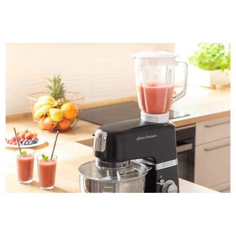 Sencor STM 6359BK multifunkciós konyhai robotgép tökéletes társ a konyhájának. A robotgép nagy 4,5 literes rozsdamentes acél táljában, nagyobb mennyiségű tészták, krémek készítésére is alkalmas. A csomag tartalmát is képező különböző Flexi cserélhető fejeknek köszönhetően lehetővé teszik a tökéletesen felvert tejszínhab vagy könnyű tojáshab elkészítését, de a dagasztás, illetve könnyű tészták elkészítése sem okoz neki gondot. A bolygóműves rendszer lehetővé teszi az alapanyagok maradéktalan feldolgozását és ezáltal minden összetevő alapos összekeverését. A bolygórendszerű működés lényege, hogy a keverőszár a saját tengelye és a hajtómű tengelye körül is forog. A 1000 W teljesítményű motor intenzitását összességében 8 teljesítmény-fokozattal lehet irányítani.
