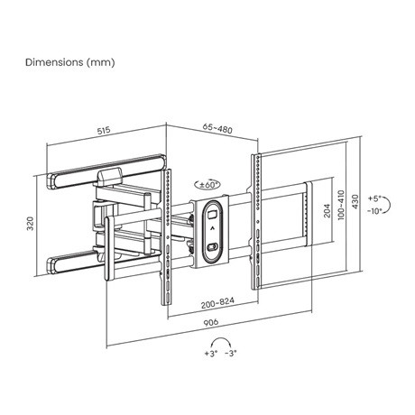 • Elfordítás: +/- 60°