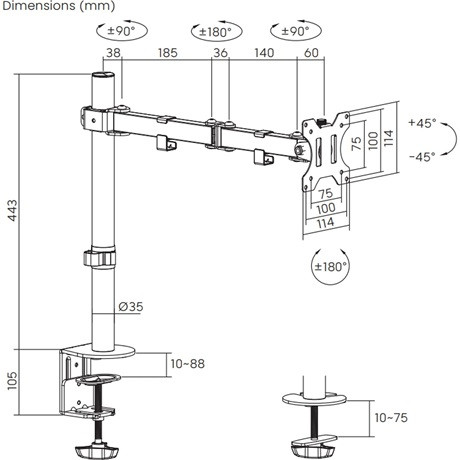 • Technikai jellemzők: 75 x 75 mm és 100 x 100 mm VESA szabvány, 8 kg teherbírás
