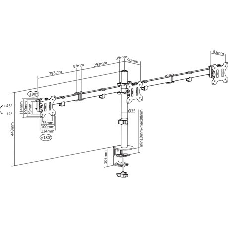 • Technikai jellemzők: 75 x 75 mm és 100 x 100 mm VESA szabvány, 21 kg teherbírás