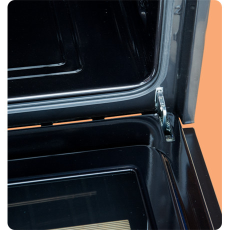 A sütő ajtaja teljes üvegből készült, csavarok nélkül.