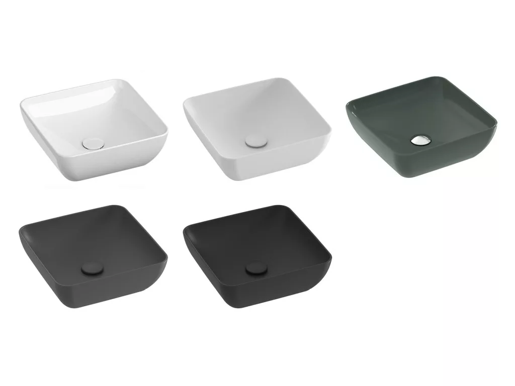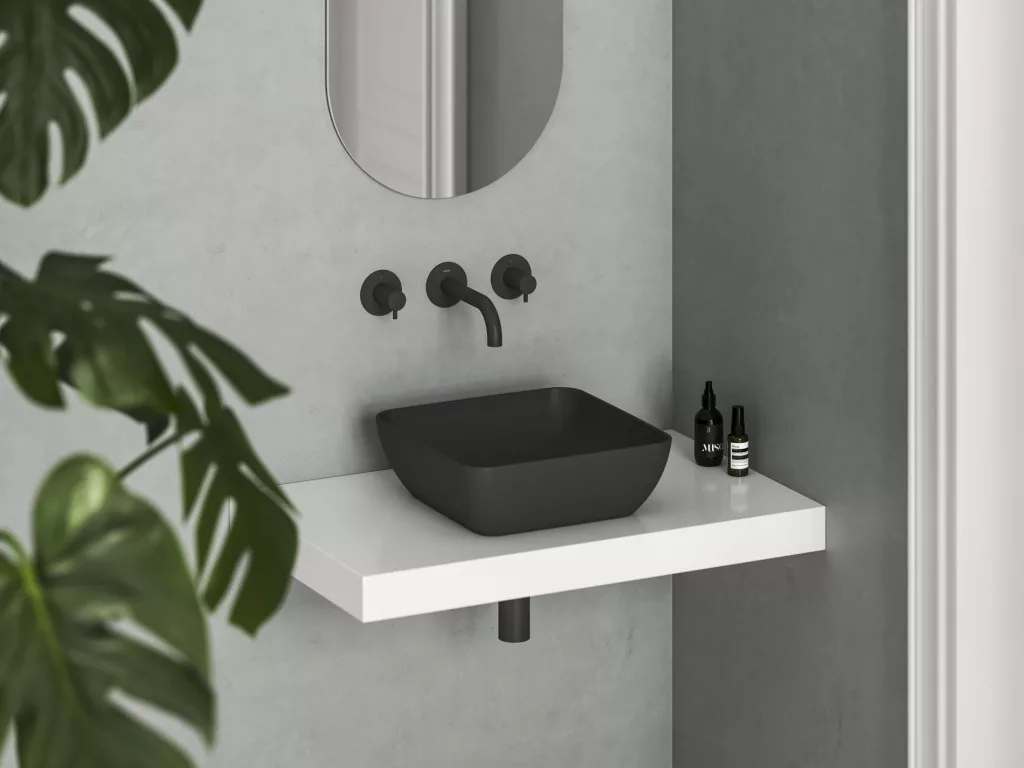 Vékonyfalú kerámia mosdó Uni Slim, asztalra vagy szekrényre szerelhető, túlfolyó nélkül. Matt fekete kivitelben.