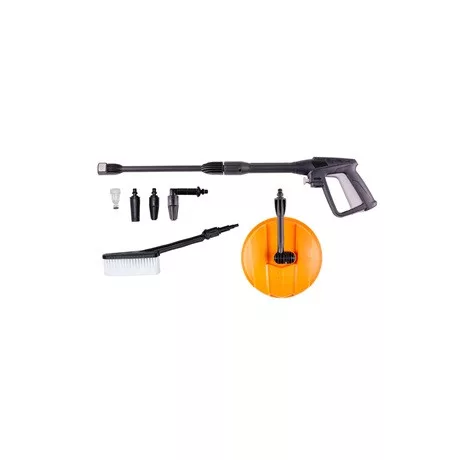 Autók, kerékpárok, udvari felületek és egyéb kültéri eszközök alapos tisztítására tervezett magasnyomású mosó. Hordozható nagynyomású tisztítóként készült, erős villanymotorral, megbízható szivattyúval és többféle fúvókával, amelyek lehetővé teszik a permetezés beállítását a különböző tisztítási feladatokhoz.