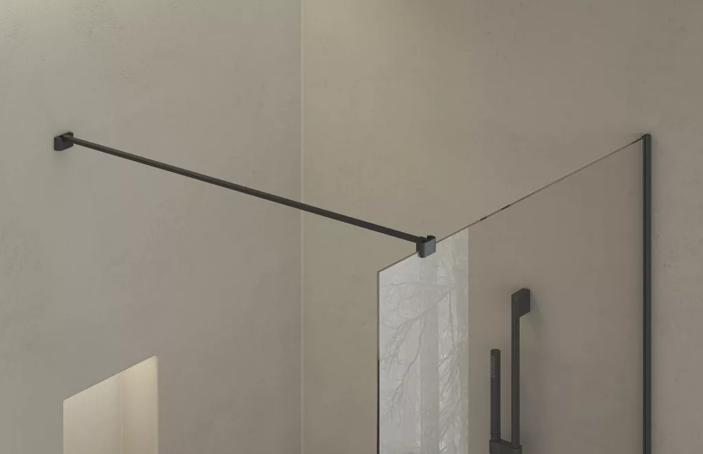 A Walk-In Air Wall zuhany 6 mm vastag edzett biztonsági üvegből és fém alkatrészekből készül. A termék stabilitását egy 120 cm hosszúságú merevítő biztosítja, amely a bejárat szükséges szélessége szerint tetszőlegesen rövidíthető.