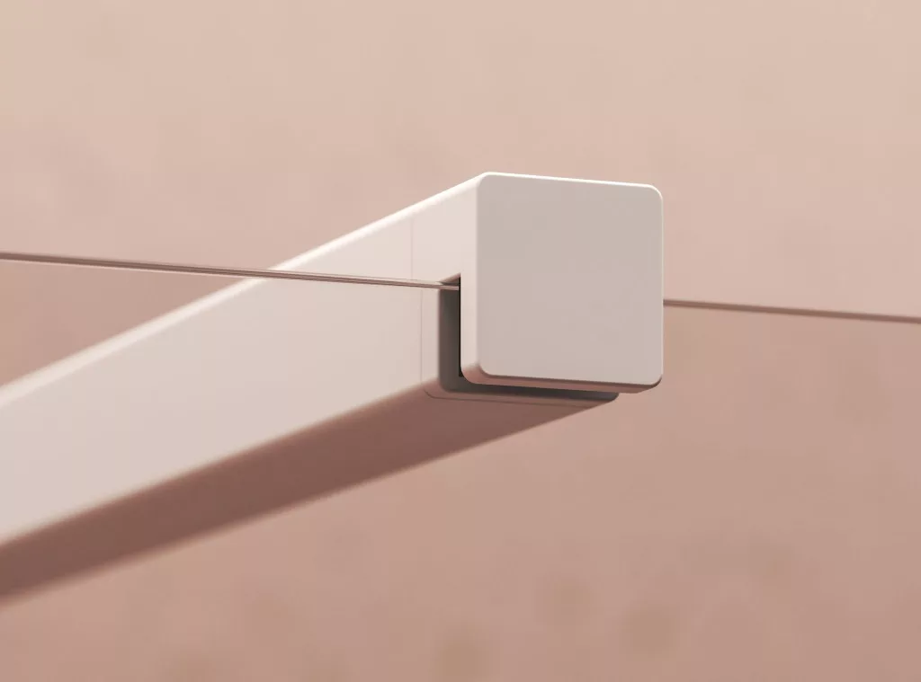 Az univerzális, 120 cm hosszú fém merevítő meghatározza a belépőnyílás szélességét, és igény szerint rövidíthető. A merevítő a falnál egy fém végzáróval végződik, amely eltakarja a vágási élt.
