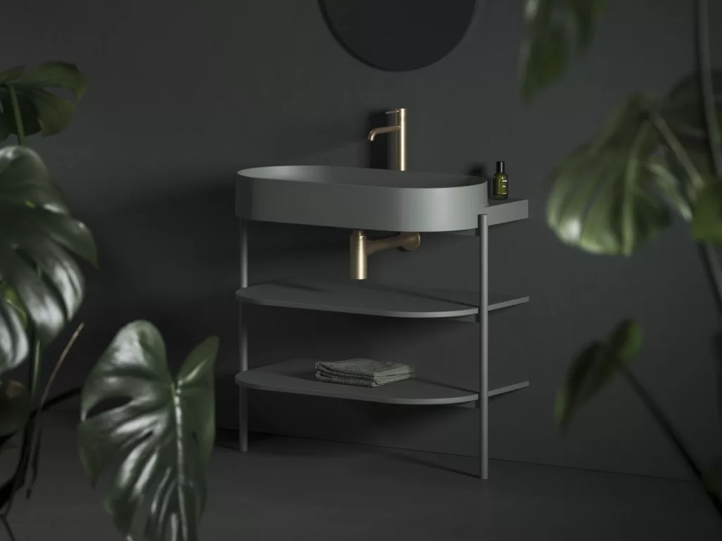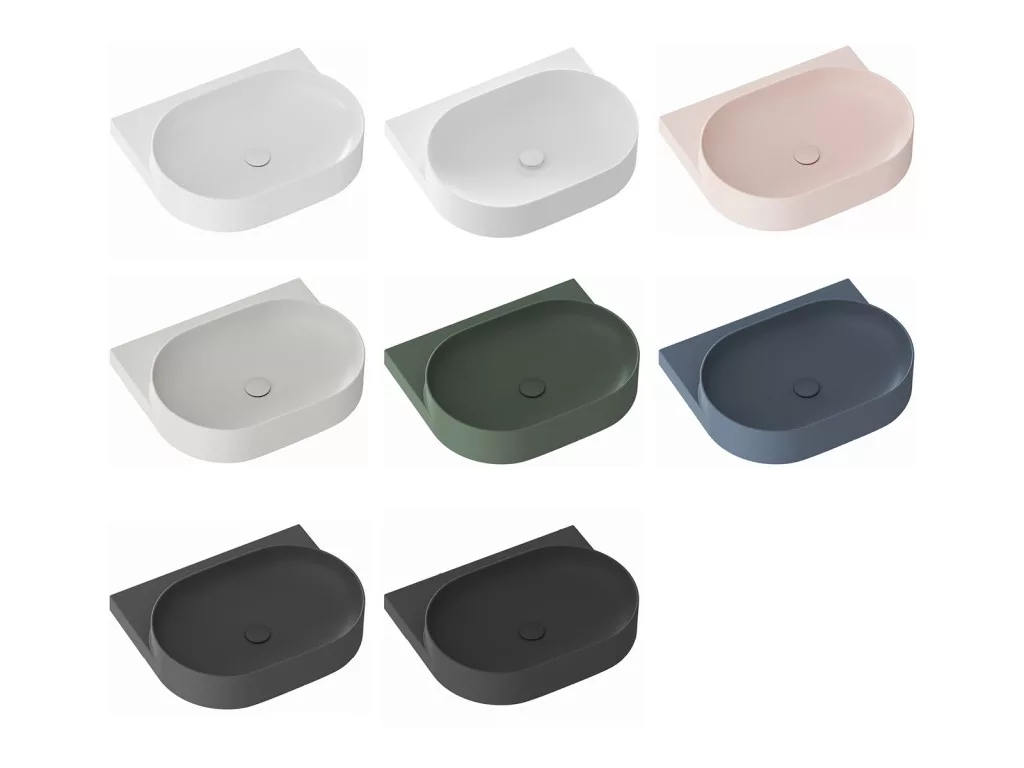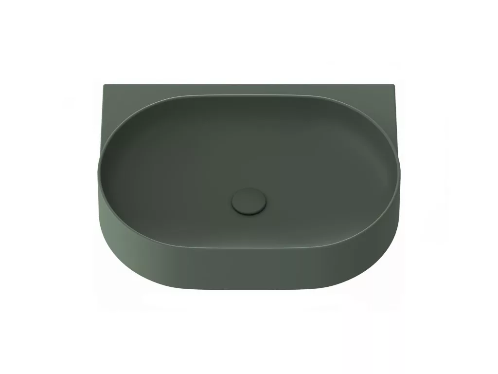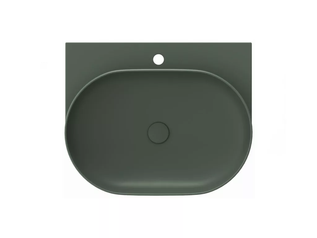 Vékonyfalú kerámia Yard mosdó a Yard konzolhoz vagy a CS Yard 60 mosdó alatti szerkezetre szerelhető, túlfolyó nélkül. Grey Green kivitel. Lyukkal álló csaptelephez.