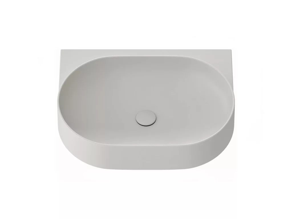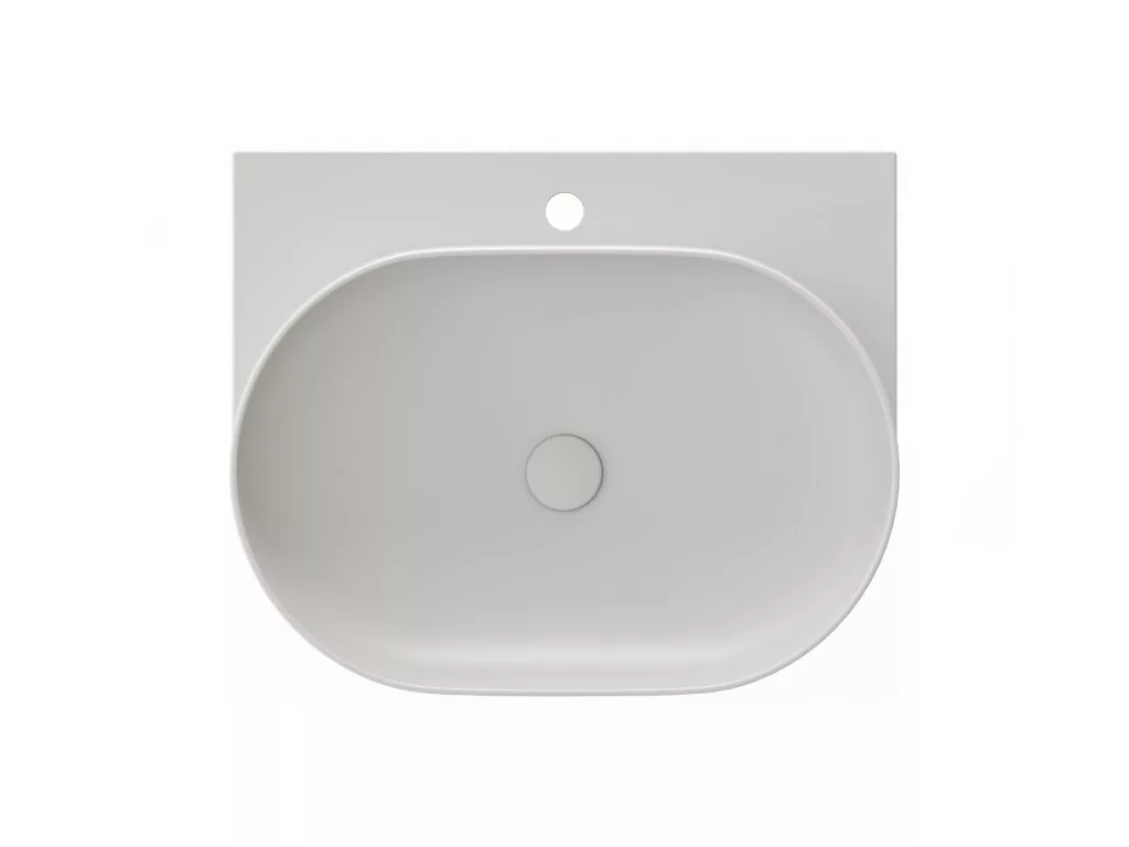 Vékonyfalú kerámia Yard mosdó a Yard konzolhoz vagy a CS Yard 60 mosdó alatti szerkezetre szerelhető, túlfolyó nélkül. Smoke Grey kivitel. Lyukkal álló csaptelephez.