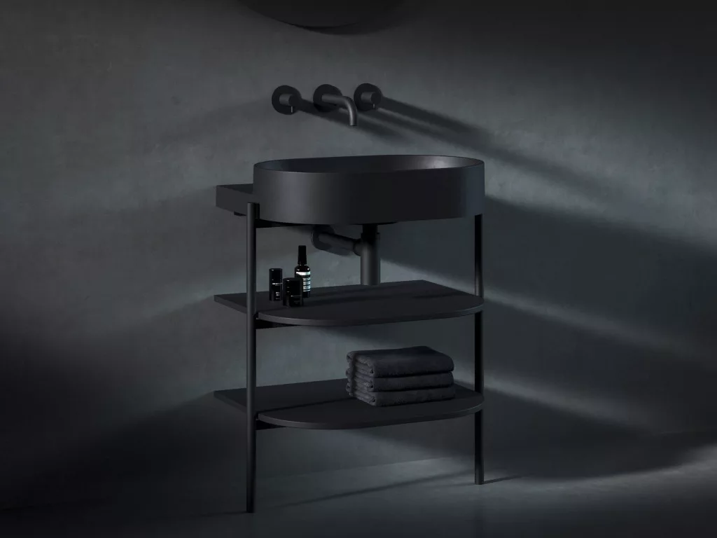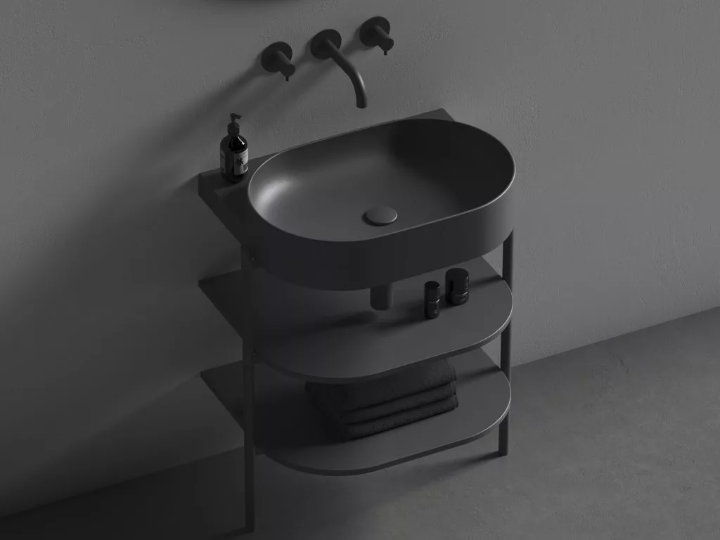 • kiegészítők megvásárolhatók: Yard 60 konzol, CS Yard 60 fürdőszobai bútor, fix mosdókagyló, Flat mosdólefolyó kerámia fedéllel matt fekete, mosdószifon, beépített mosdócsaptelep