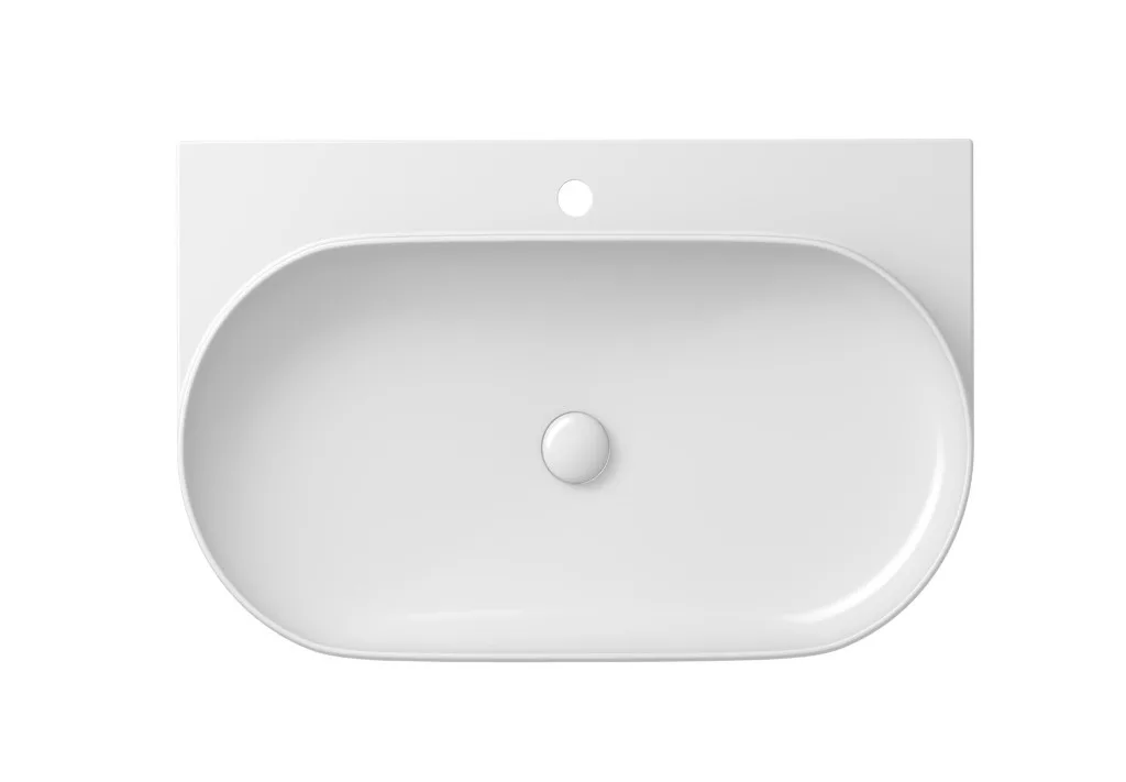 Vékonyfalú kerámia Yard mosdó a Yard konzolhoz vagy a CS Yard 80 mosdó alatti szerkezetre szerelhető, túlfolyó nélkül. Fehér kivitel. Lyukkal álló csaptelephez.
