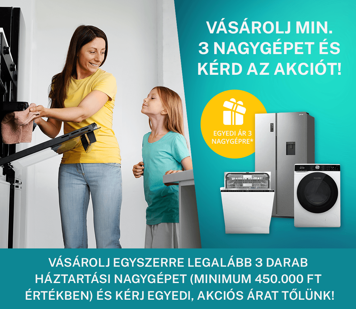 Vásárolj egyszerre legalább 3 darab nagyháztartási gépet (minimum 450.000 Ft értékben) és kérd egyedileg létrehozott árajánlatunkat!
