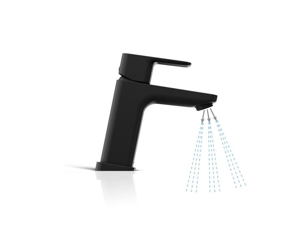 10° Free álló mosdócsaptelep leeresztő nélkül. Matt fekete kivitelben. FlexiFlow funkciójú perlátorral.
