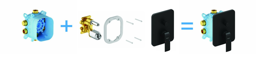 Beépített 2-utas Flat kád/zuhany csaptelep, R-boxhoz. Matt fekete kivitelben.