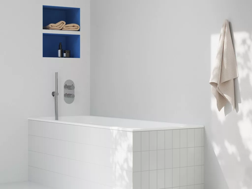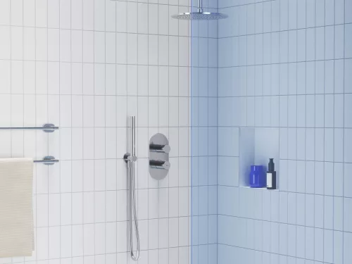 A termosztatikus beépített csaptelep az R-box szerelőtest használatára készült, amely jelentősen megkönnyíti a munkát és javítja a teljes munka eredményét. A fürdőszoba egységes megoldásának és designjának érdekében javasoljuk, hogy kombinálja az Espirit csaptelepekkel azonos színben.