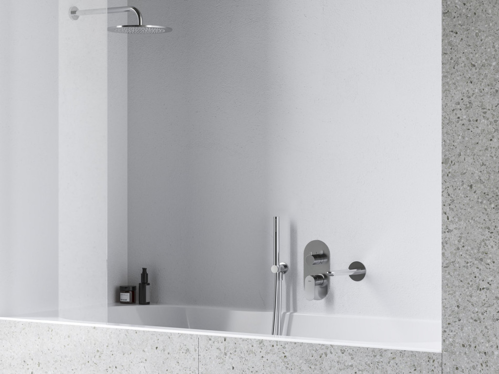 Eleganta falba süllyesztett 3-utas csaptelep, R-boxhoz. Króm kivitelben.