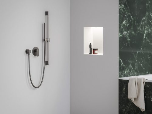 Eleganta falba süllyesztett 1-utas csaptelep. Grafit színben.