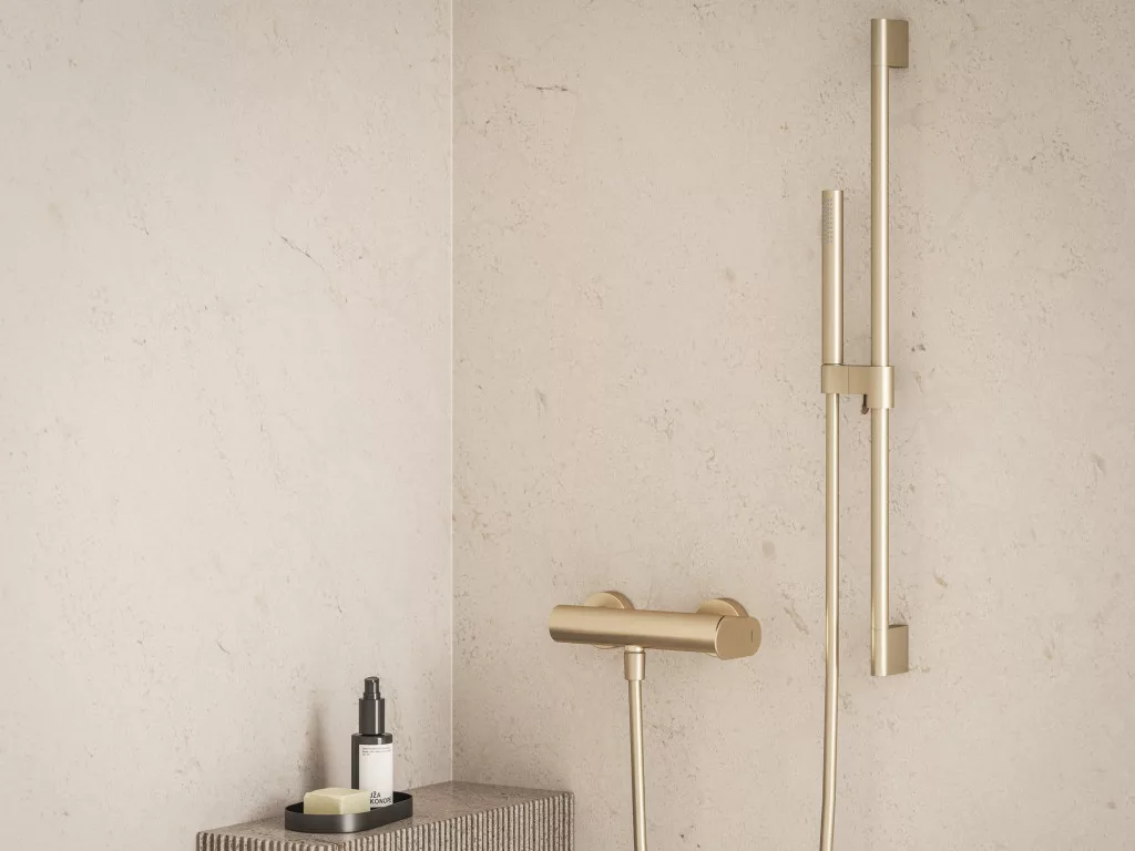 Eleganta fali zuhanycsaptelep, szett nélkül. rose gold kivitelben. Süllyesztett perlátor.