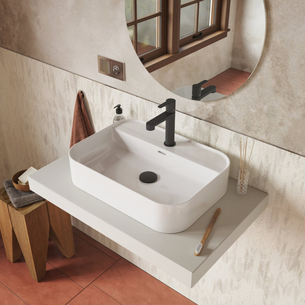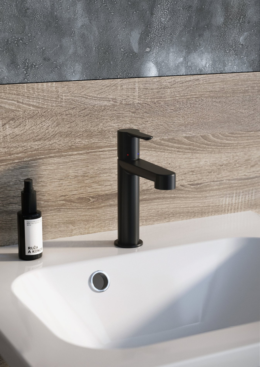 Puri álló mosdócsaptelep leeresztő nélkül. Új dizájn, lágyabb formákkal és világosabb megjelenéssel. Matt fekete kivitelben. Perlátor FlexiFlow funkcióval.