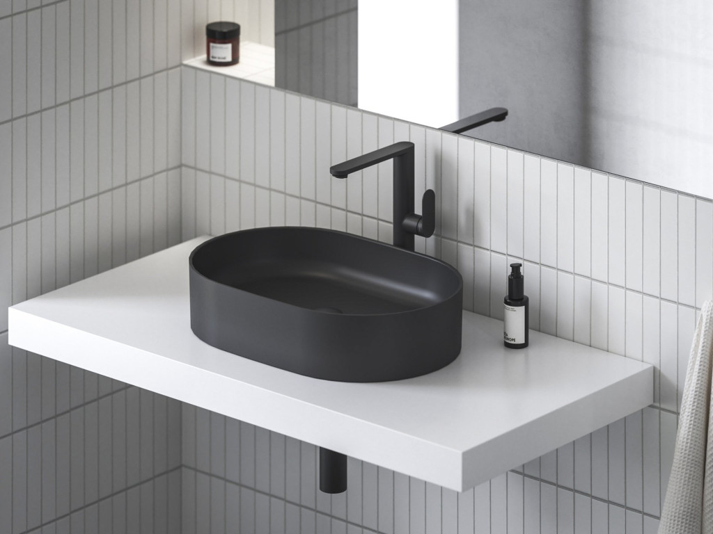 Chrome II álló mosdócsaptelep oldalsó karral, leeresztő nélkül. Fekete kivitelben. EcoFlow funkcióval, amely csökkenti a vízfogyasztást.